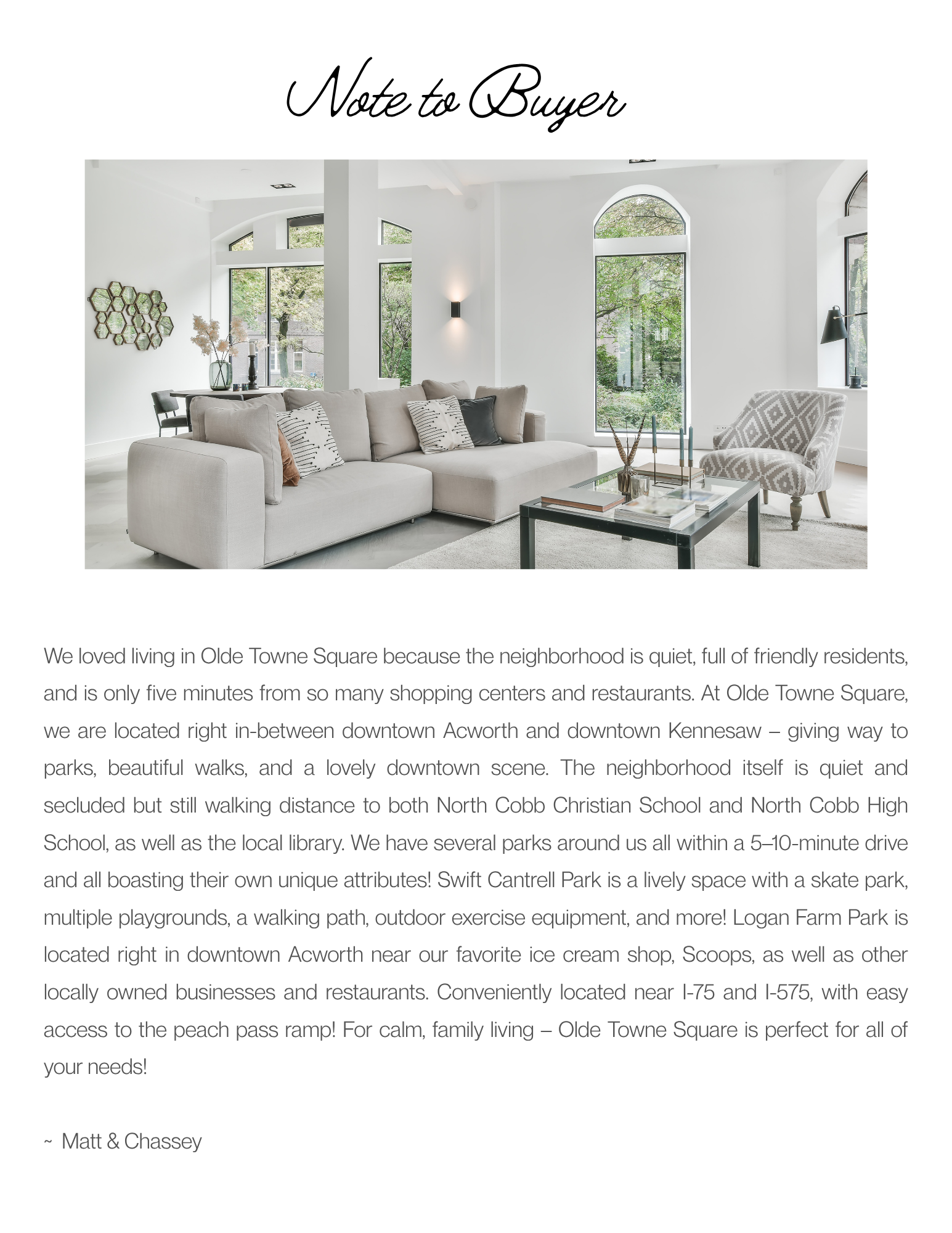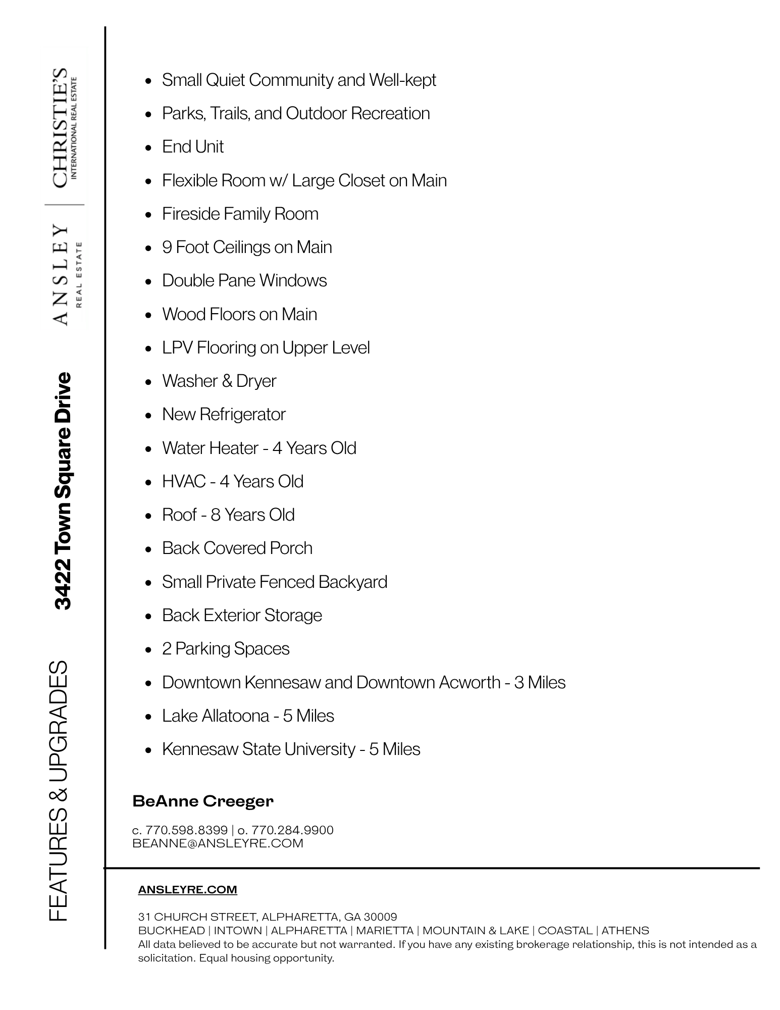 Welcome to Olde Town Square, a quiet, well-kept community in the heart of Kennesaw. Whether you’re a student, first-time buyer, small family, or anyone seeking a simpler lifestyle, this end-unit townhome is designed to fit a variety of needs—affordable, low-maintenance, and ideally located close to two downtown centers with easy access to state parks and outdoor recreation.